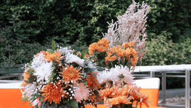 Soft floral décor arranged in warm tones, creating a refined and welcoming table setting.